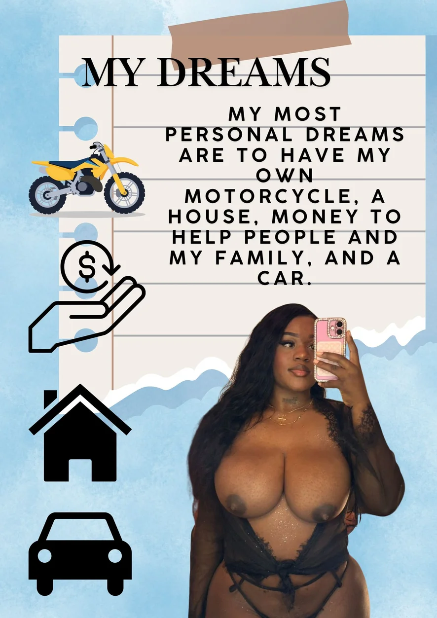 Mes rêves les plus personnels sont d'avoir ma propre moto, une maison, de l'argent pour aider les autres et ma famille, et une voiture.